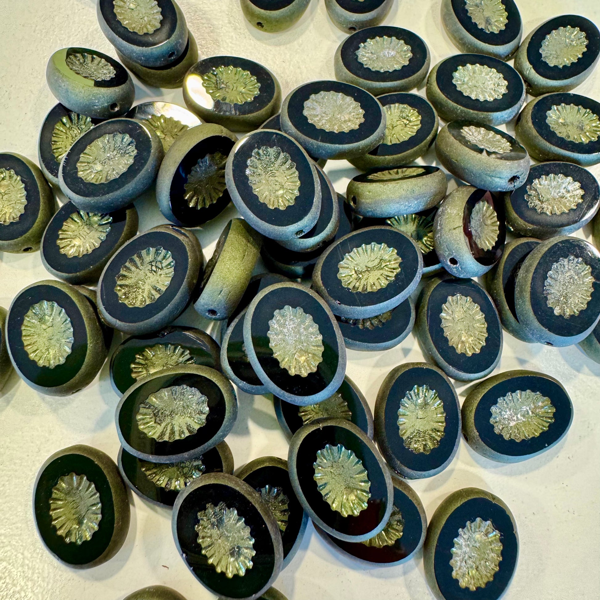 テーブルカットキウイビーズ、ブラックマットラスターレッドフルコーティング(23980-84100-14495)、ガラス、チェコ共和国