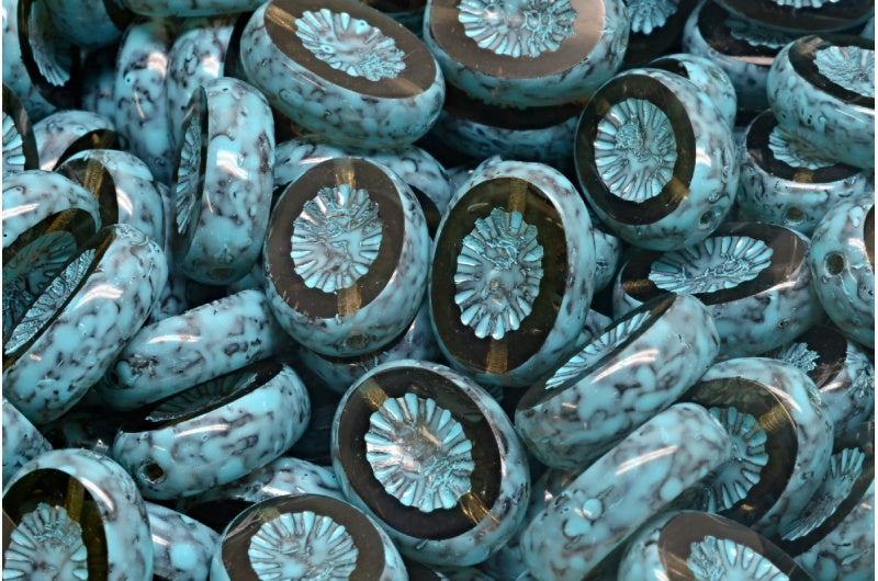 テーブルカットキウイビーズ、透明グレーターコイズスポット(40030-33309)、ガラス、チェコ共和国