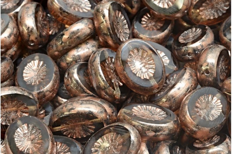 テーブルカットキウイビーズ、透明グレー銅スプラッシュ(40030-86750)、ガラス、チェコ共和国