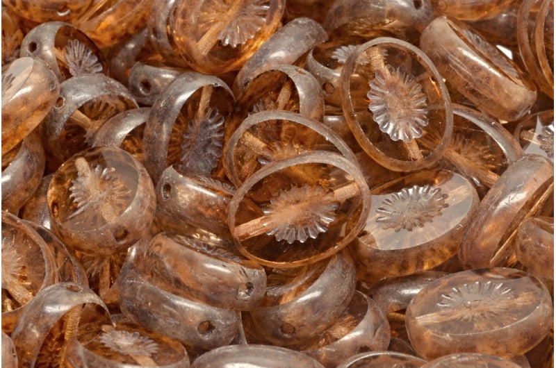 テーブルカットキウイビーズ、透明ピンクトラバーチン(70110-86800)、ガラス、チェコ共和国