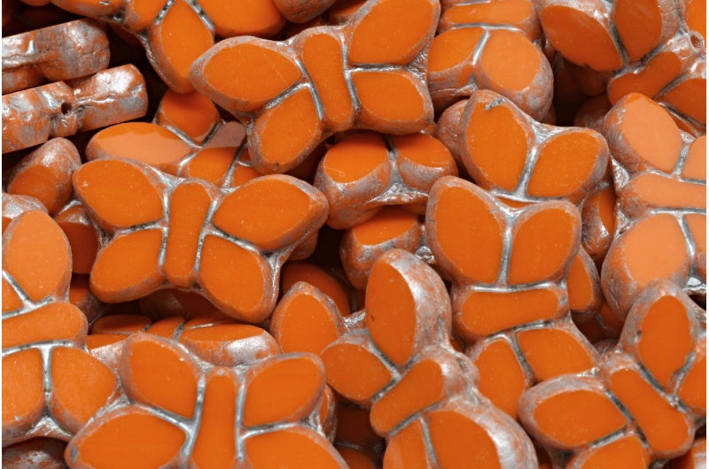 テーブルカットバタフライビーズ、不透明イエローシルバースプラッシュ(93120-86700)、ガラス、チェコ共和国