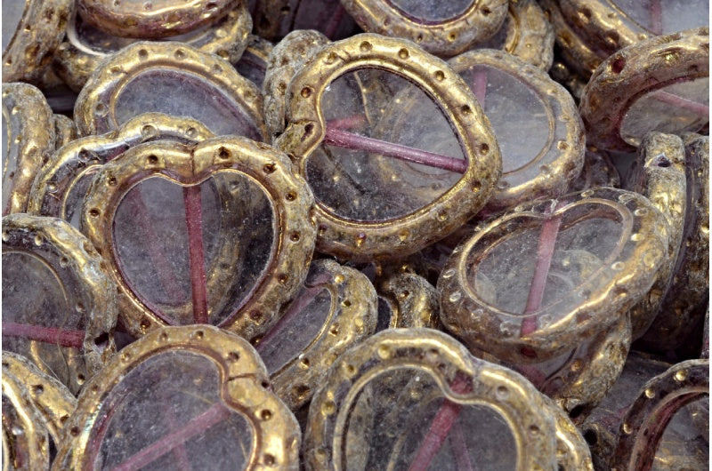 テーブルカットハートインハートビーズ、クリスタルブラス(00030-90215)、ガラス、チェコ共和国