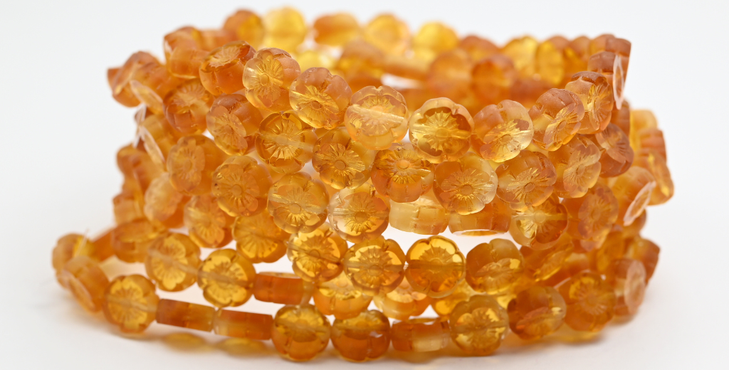 テーブルカットラウンドビーズハワイアンフラワー、透明ライトトパーズイエローBラスタークリーム(1002008-B-14401)、ガラス、チェコ共和国〜STRANDED