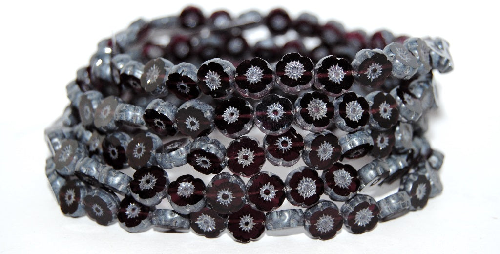 テーブルカットラウンドビーズハワイアンフラワー、透明アメジストラスタークリーム(8-20080-14401)、ガラス、チェコ共和国