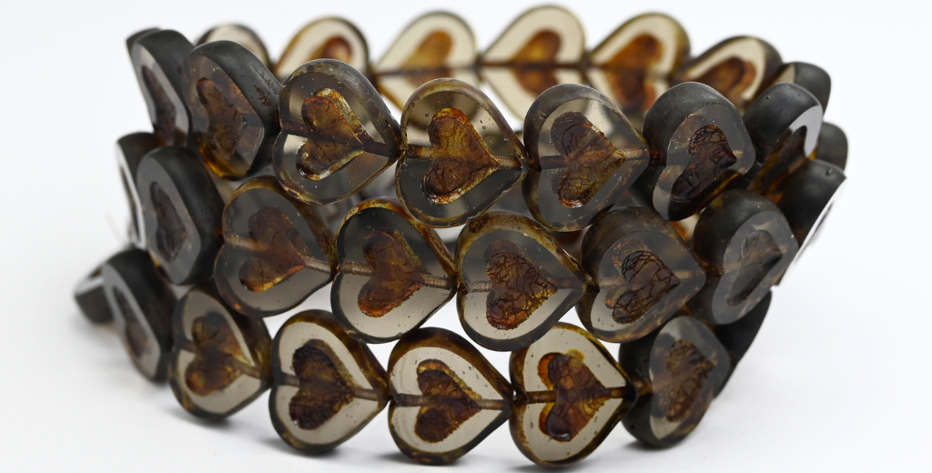 テーブルカットハートビーズ(ハート付き)、透明グレーマット(1412-40030-MAT)、ガラス、チェコ共和国