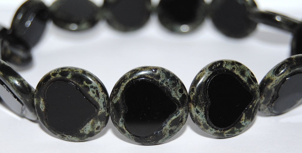 テーブルカットラウンドビーズ(ハート付き)、ブラックトラバーチン(23980-86800)、ガラス、チェコ共和国