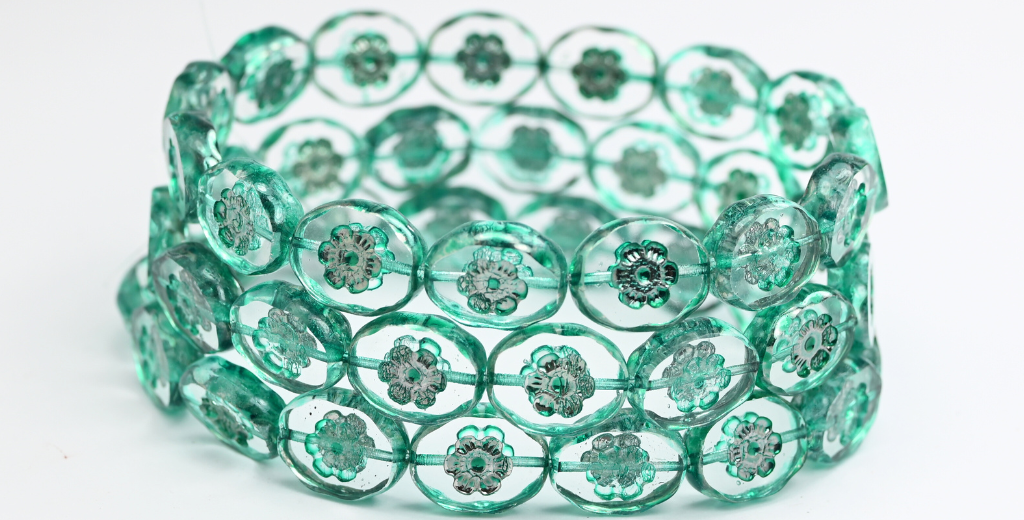 テーブルカットオーバルビーズ(花付き)、クリスタル 34319 (00030-34319)、ガラス、チェコ共和国