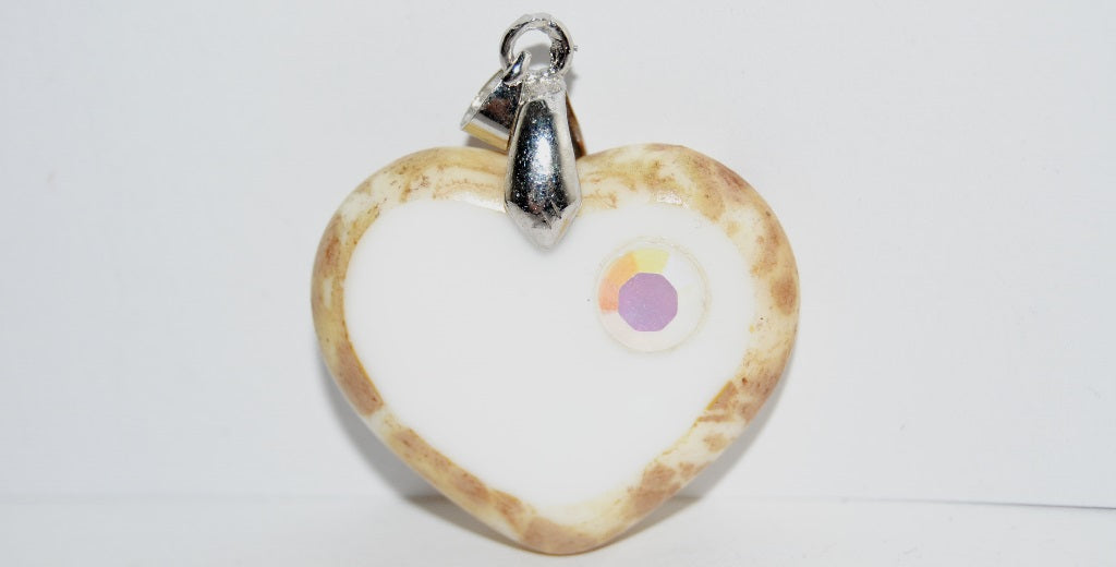 テーブルカットハートビーズ、PPチョークホワイトピカソ(PP-03000-43400)、ガラス、チェコ共和国