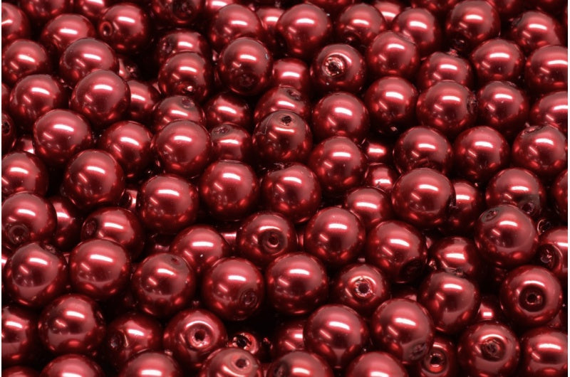 アウトレット 10グラム ラウンドドラックビーズ、ホワイトレッドパール(02010-70499)、ガラス、チェコ共和国