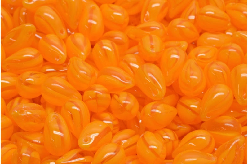アウトレット 10グラム ドロップビーズ、6 x 9 mm、オレンジ (96010)、ガラス、チェコ共和国