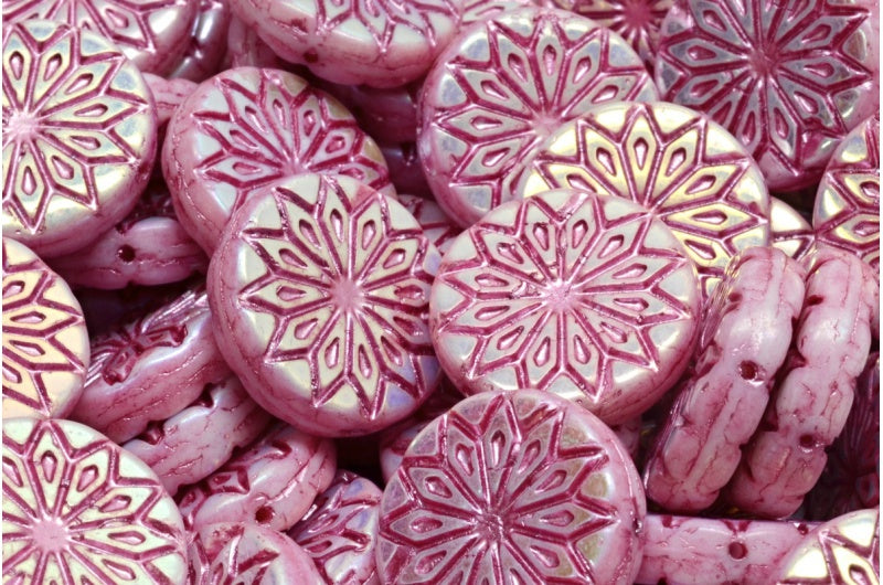 アウトレット 10グラム 折り紙フラワービーズ、ホワイトアブフル(2Xサイド)ピンクライン(02010-28703-54321)、ガラス、チェコ共和国