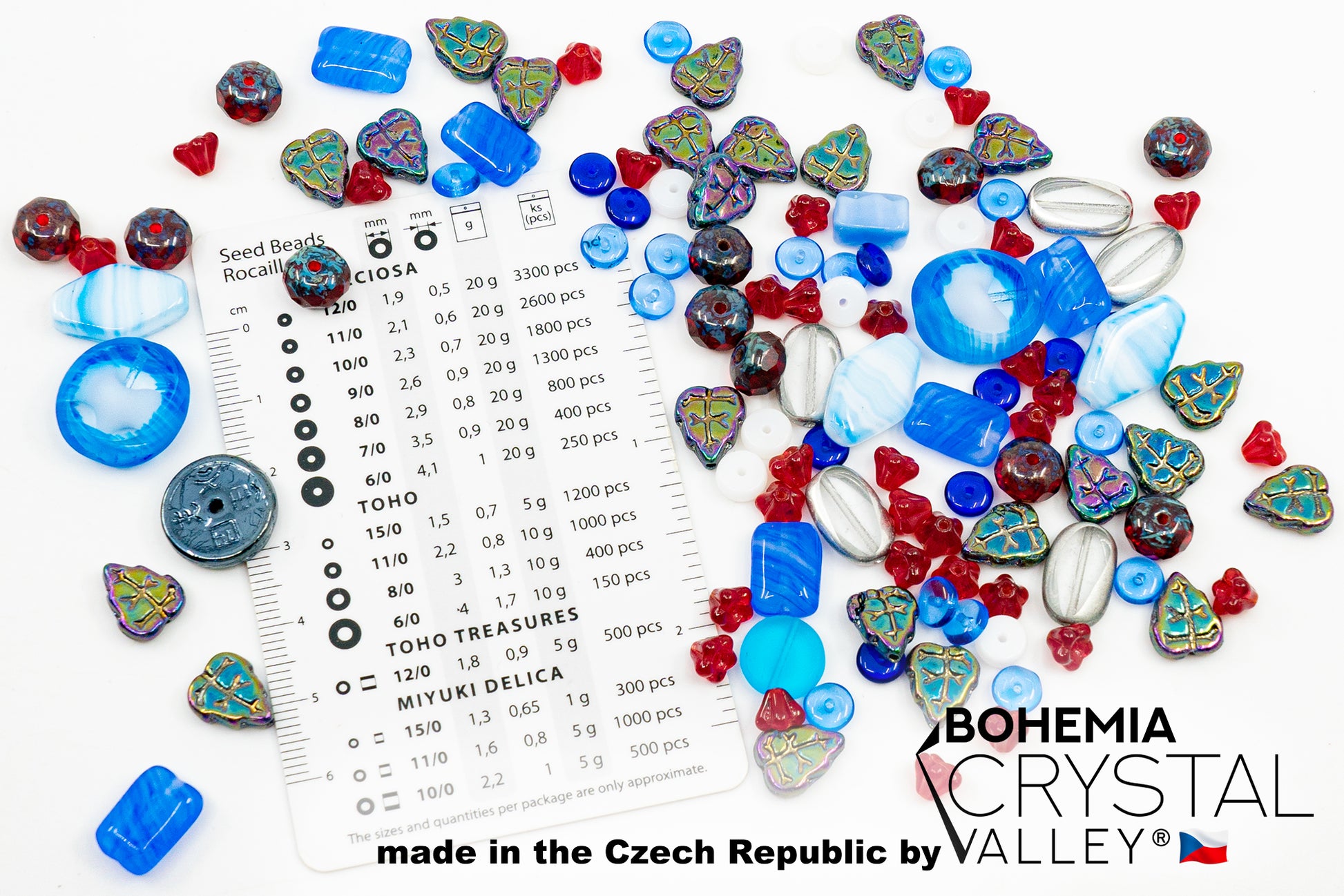 限定チェコガラスビーズテーブルカット、マットと光沢、ファセットファイヤーポリッシュ、ハンドメイドセットキット、ブルーレッドホワイトチェコ