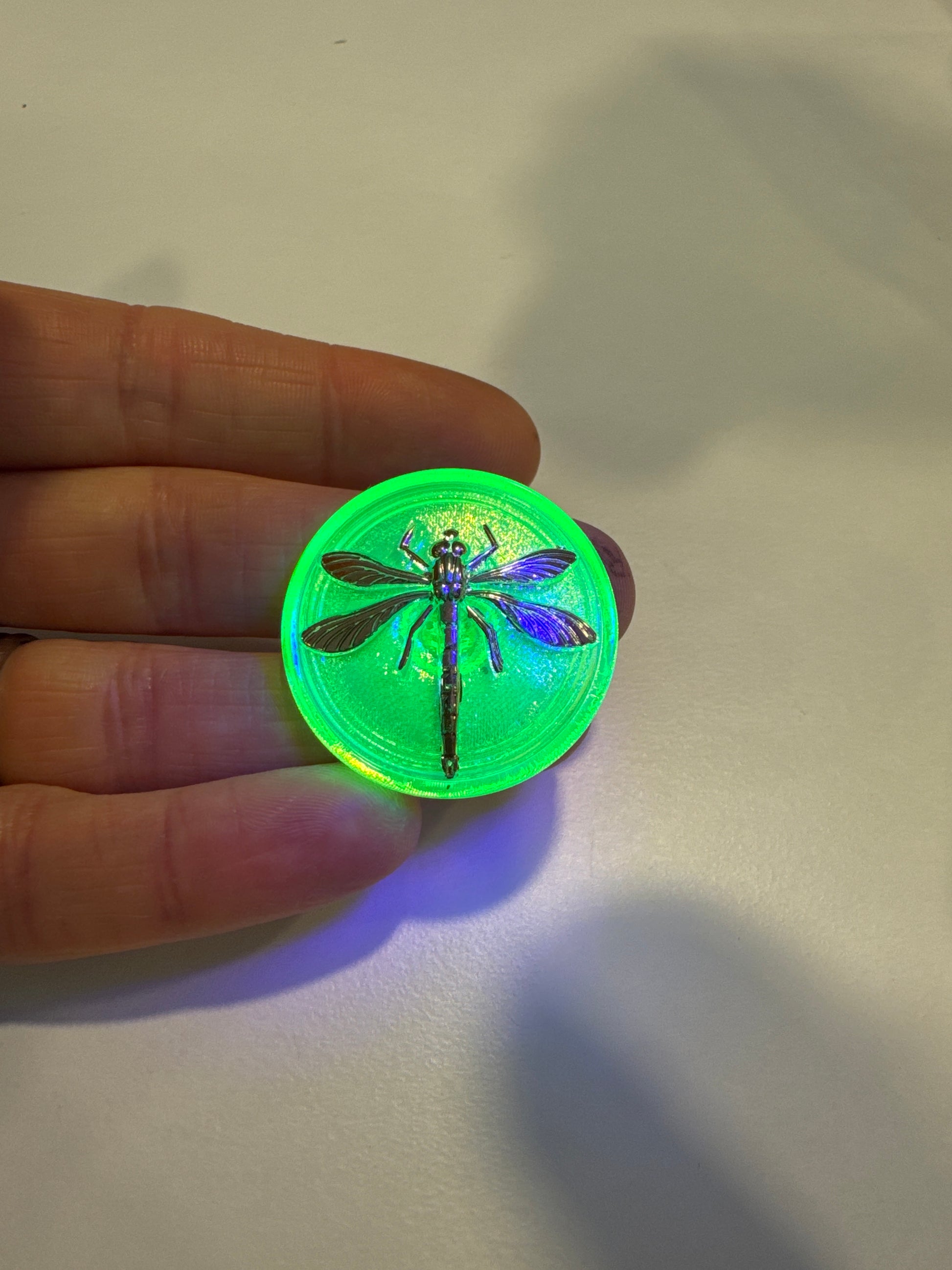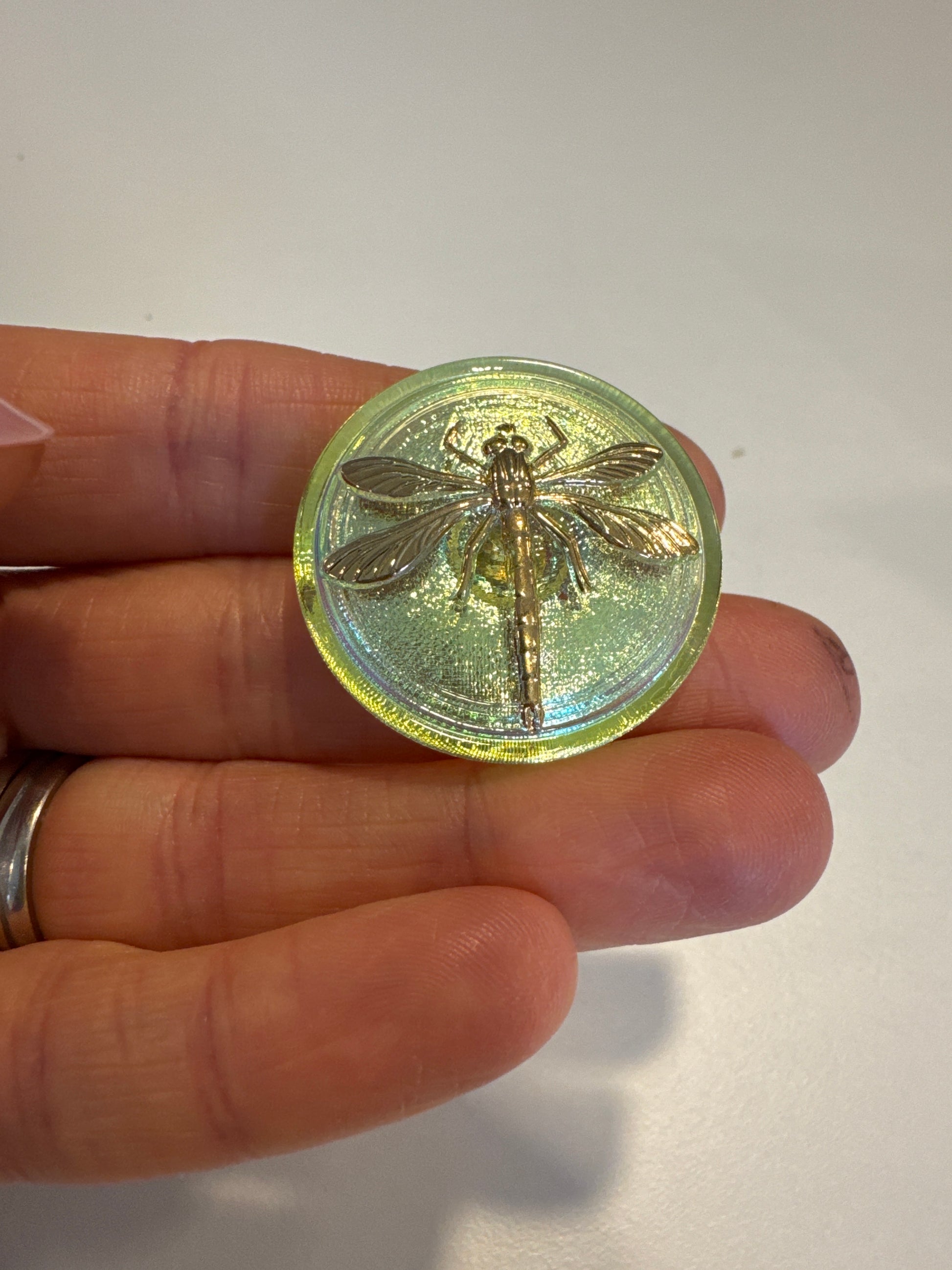 トンボ、猫、花などさまざまな装飾が施された高品質のチェコガラスボタン。