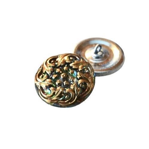 1個 ハンドペイントガラスボタン(飾り付き)、サイズ10(22.5 mm)、ガラス、チェコ共和国