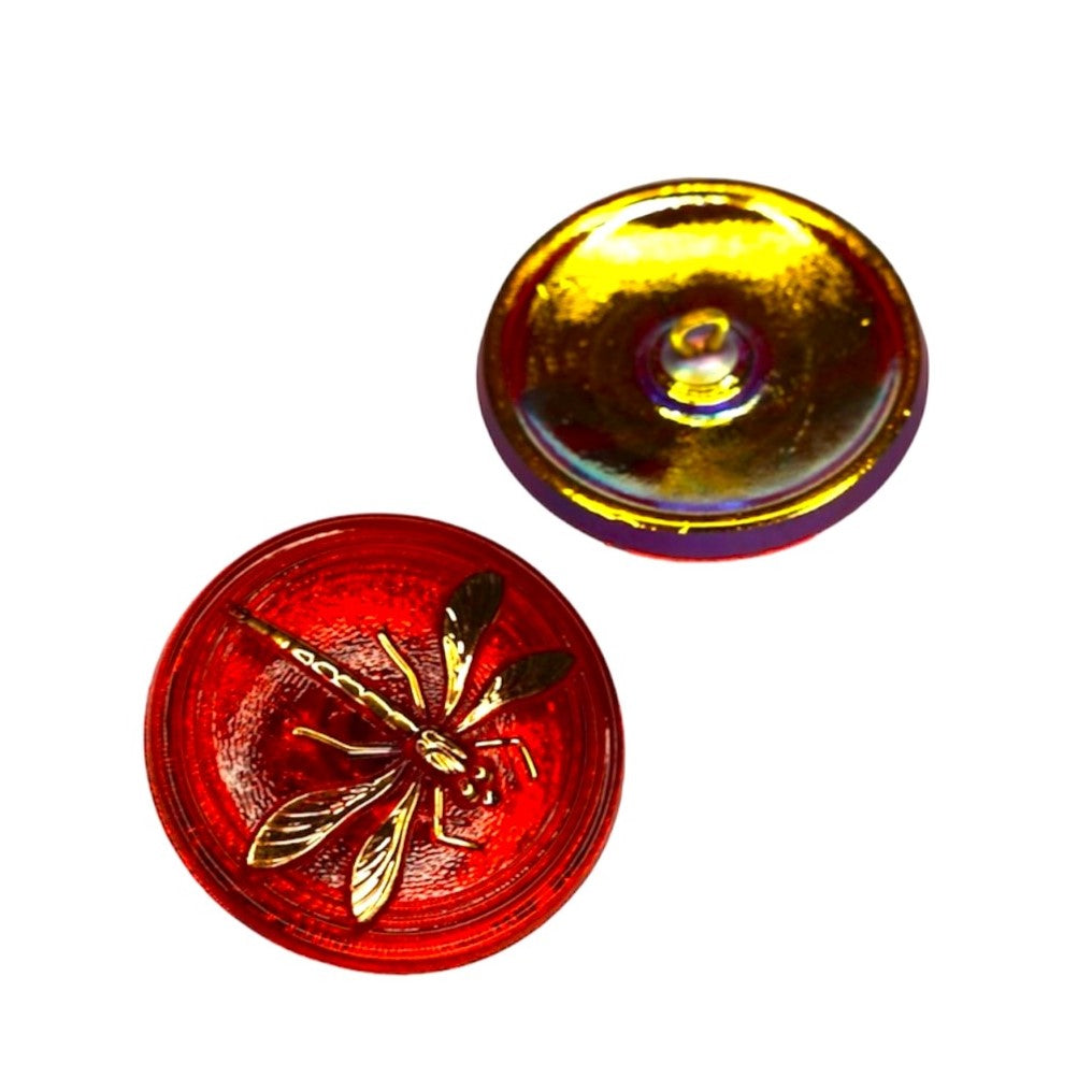 1個 ハンドペイントガラスボタン、飾りトンボ付き、サイズ14 (31.5 mm)、ガラス、チェコ共和国