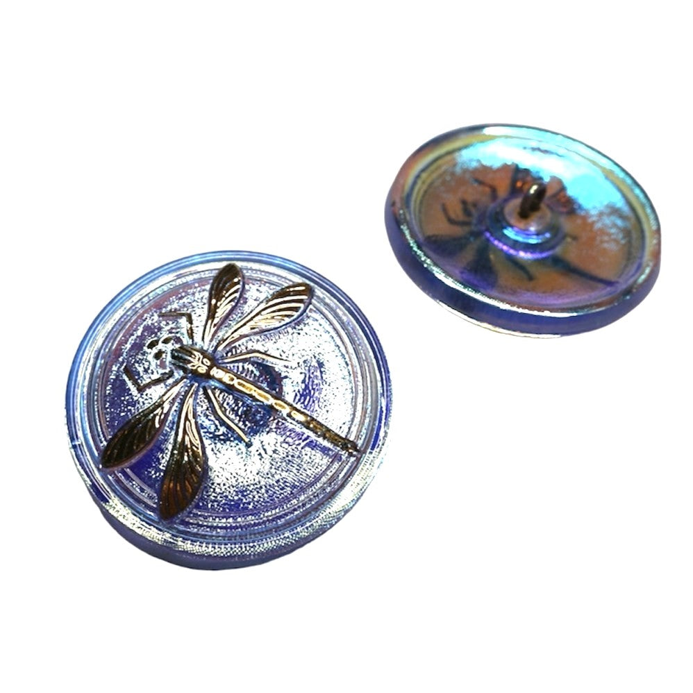 1個 ハンドペイントガラスボタン、飾りトンボ付き、サイズ14 (31.5 mm)、ガラス、チェコ共和国