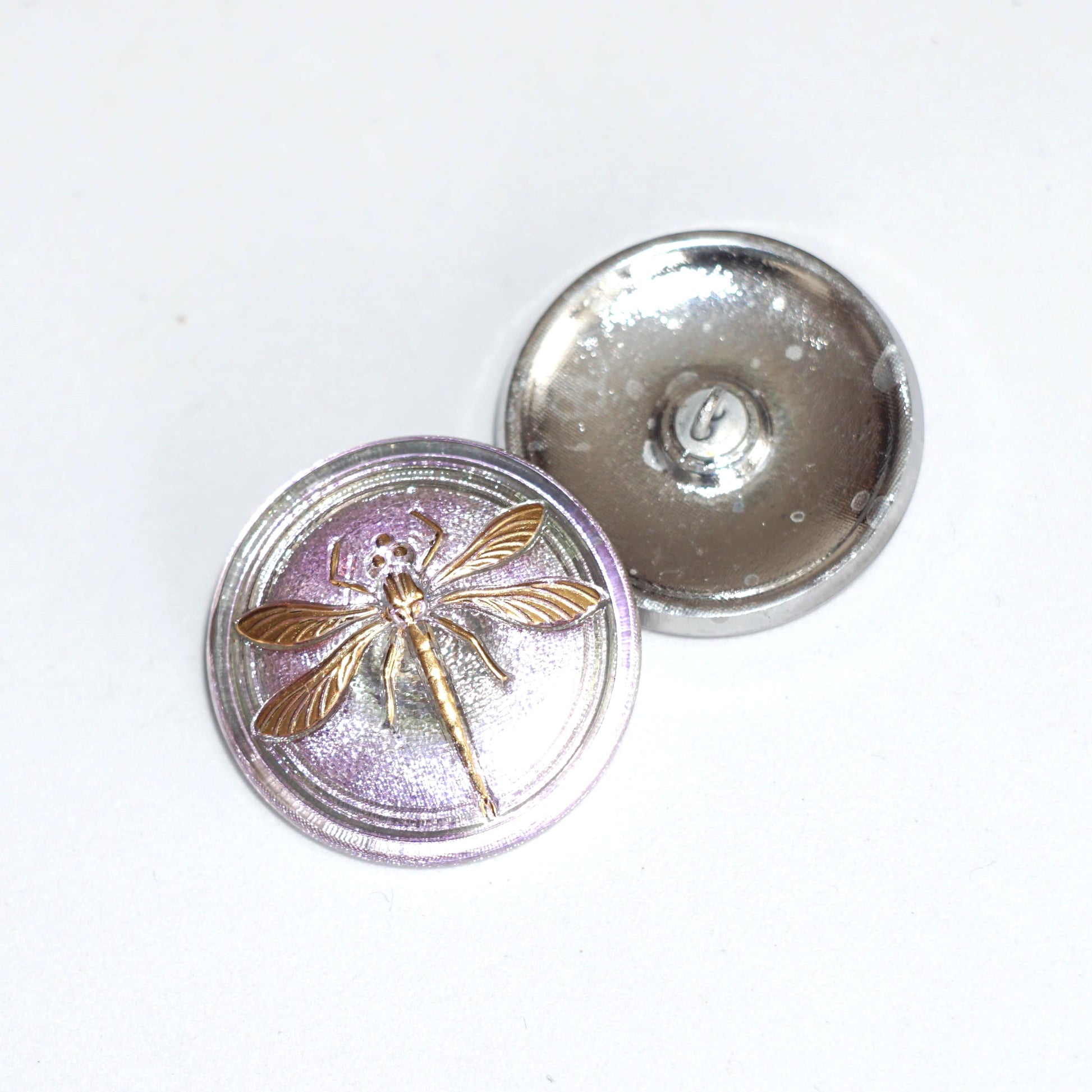 1個 ハンドペイントガラスボタン、飾りトンボ付き、サイズ14 (31.5 mm)、ガラス、チェコ共和国