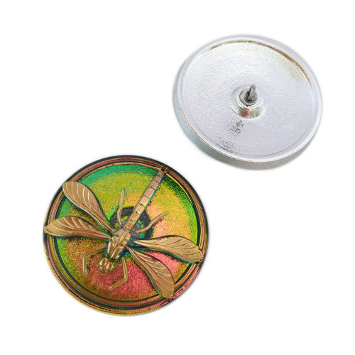 1個 ハンドペイントガラスボタン、飾りトンボ付き、サイズ14 (31.5 mm)、ガラス、チェコ共和国