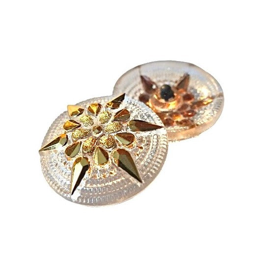 1個 手描きガラスボタン(飾り付き)、サイズ16(36 mm)、ガラス、チェコ共和国