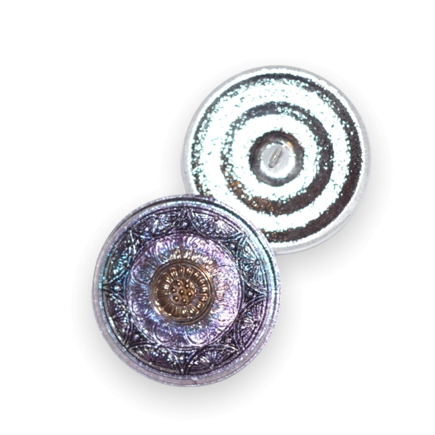 1個 手描きガラスボタン(飾り付き)、サイズ16(36 mm)、ガラス、チェコ共和国