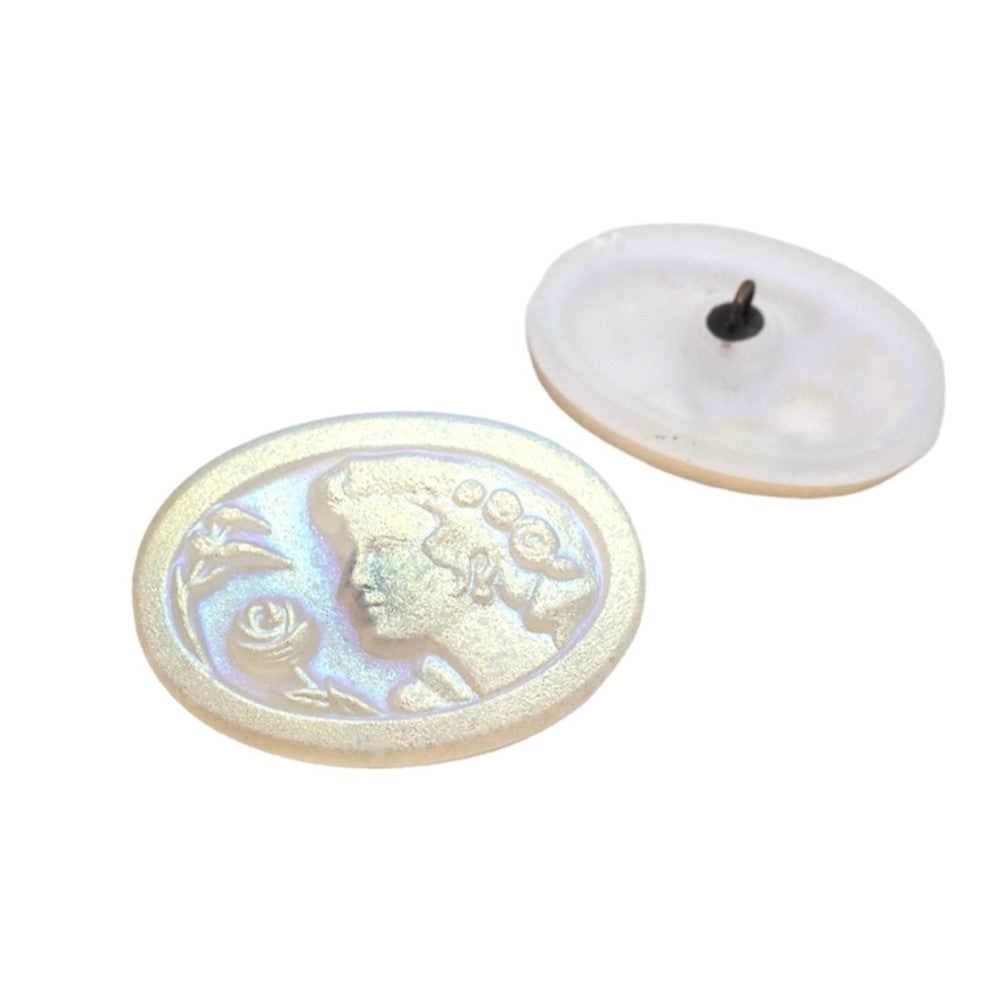 1個 手描きガラスボタン(飾り付き)、サイズ18(40.5 mm)、ガラス、チェコ共和国