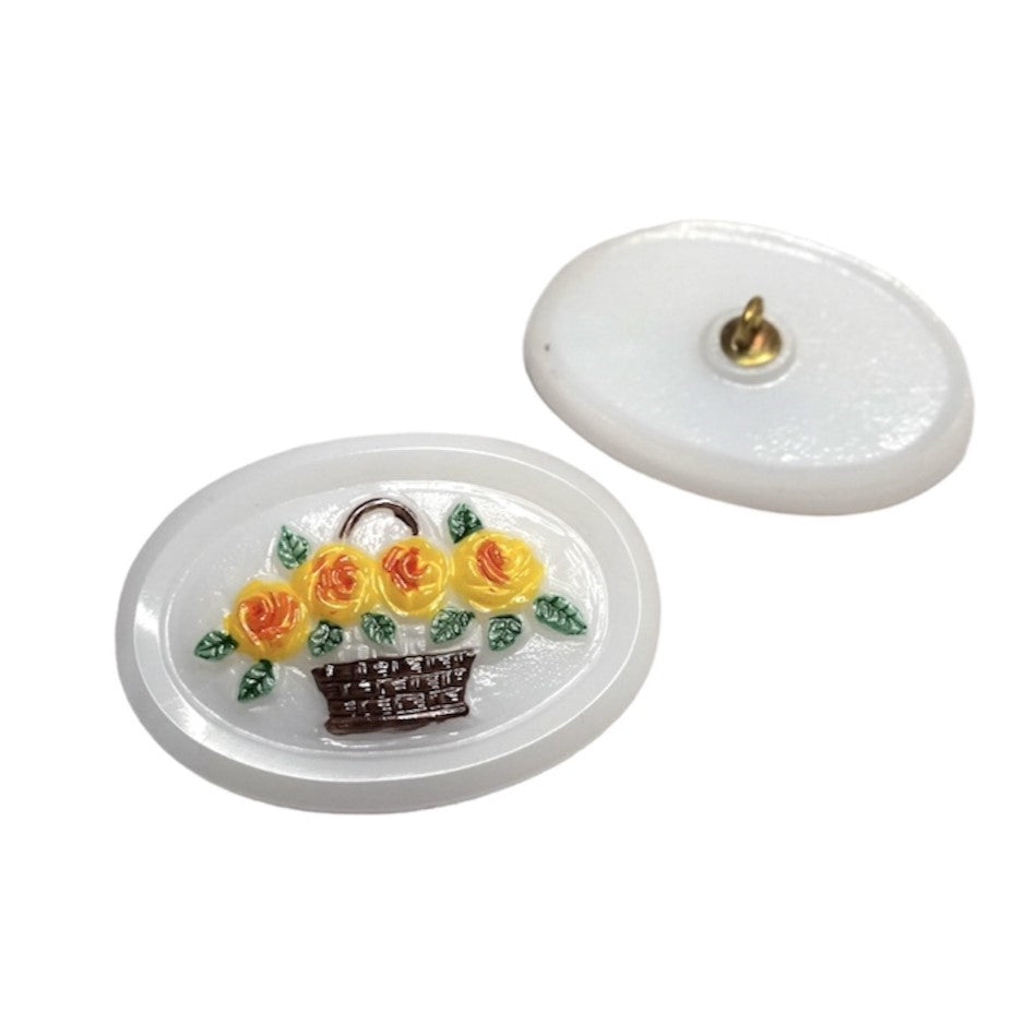 1個 手描きガラスボタン(飾り付き)、サイズ18(40.5 mm)、ガラス、チェコ共和国