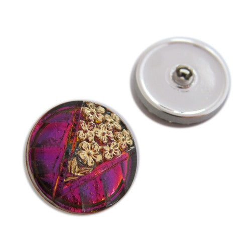 1個 手描きガラスボタン(飾り付き)、サイズ8(18 mm)、ガラス、チェコ共和国