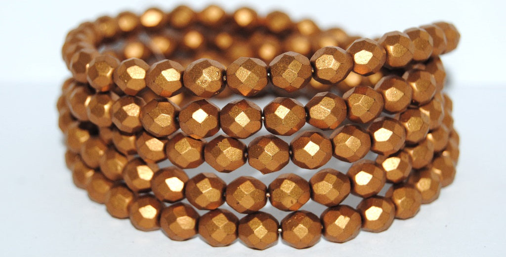 ファイアポリッシュラウンドファセットビーズ、ブロンズマット(01740)、ガラス、チェコ共和国