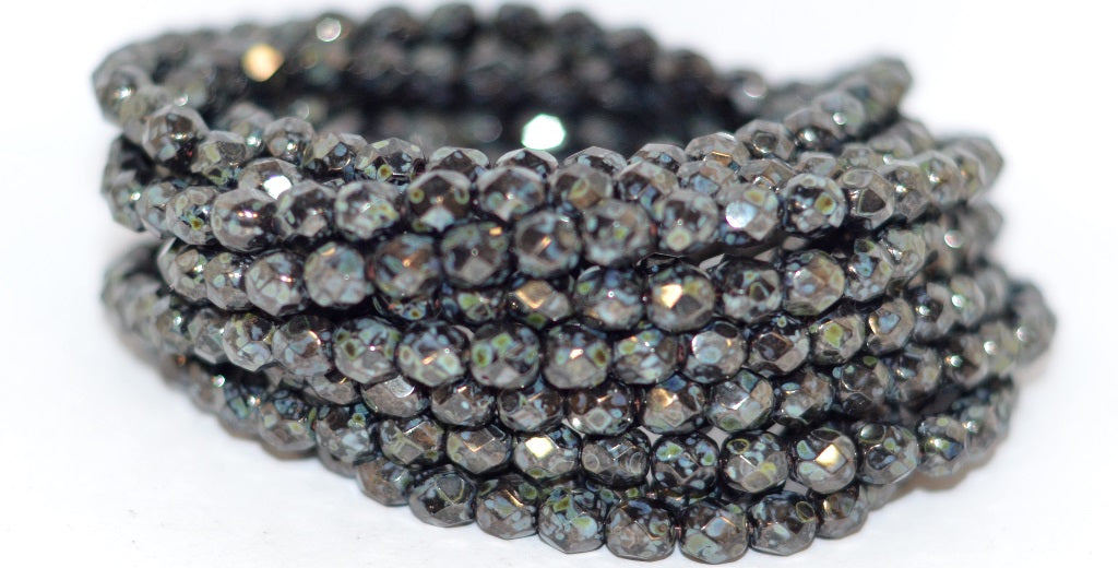 ファイヤーポリッシュラウンドファセットビーズ、ブラックセネガル銅(23980-15635)、ガラス、チェコ共和国〜STRANDED