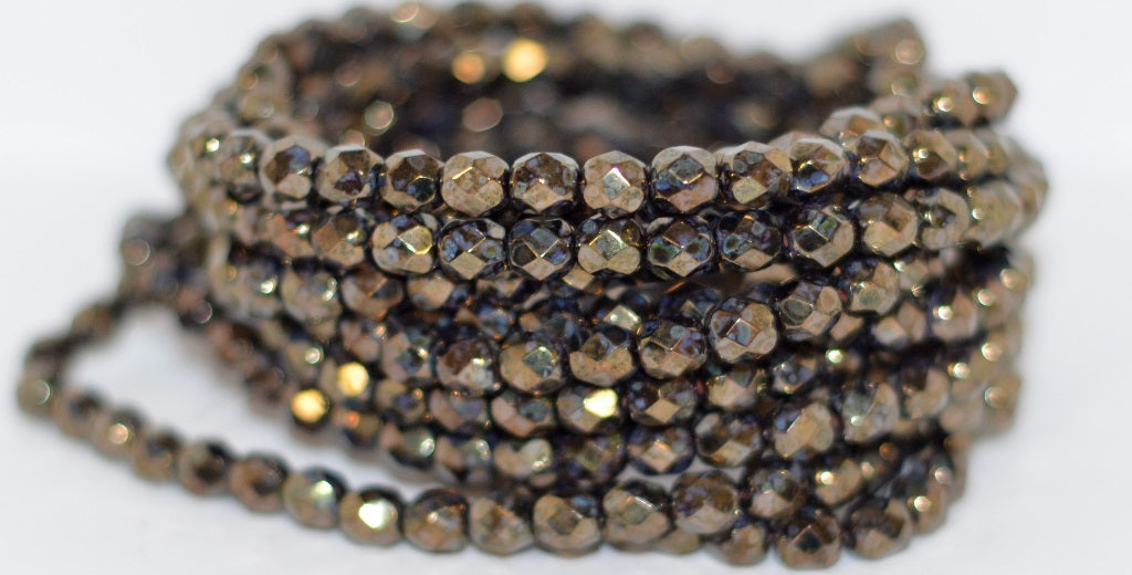 ファイヤーポリッシュラウンドファセットビーズ、ブラックセネガルバイオレット(23980-15695)、ガラス、チェコ共和国