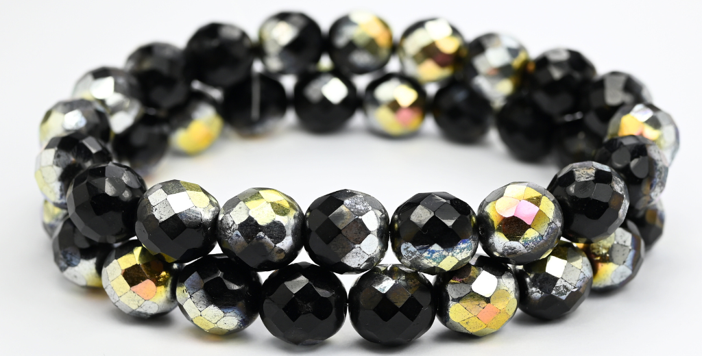 ファイアポリッシュラウンドファセットビーズ、ブラックローズゴールドカプリS(23980-27101-S)、ガラス、チェコ共和国〜STRANDED