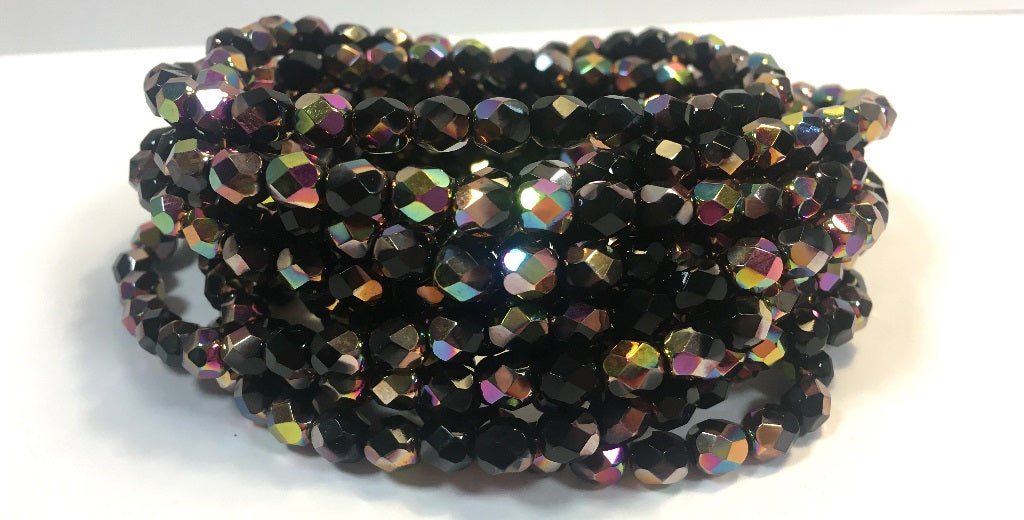 ファイアポリッシュラウンドファセットビーズ、ブラック 27105 (23980-27105)、ガラス、チェコ共和国