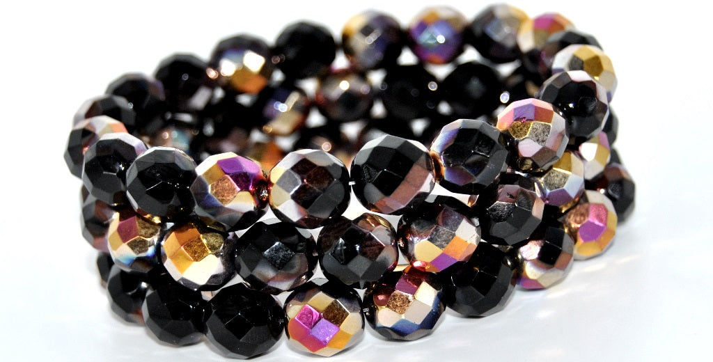 ファイヤーポリッシュラウンドファセットビーズ、ブラックスリペリット(23980-29500)、ガラス、チェコ共和国~STRANDED