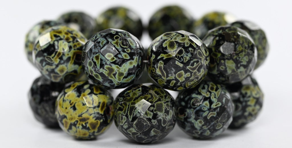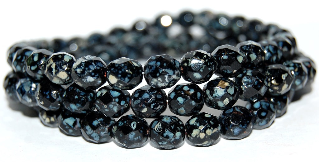 ファイアポリッシュラウンドファセットビーズ、ブラックピカソ(23980-43400)、ガラス、チェコ共和国