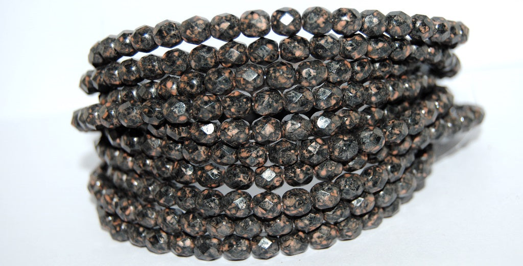 ファイヤーポリッシュラウンドファセットビーズ、ブラック銅ライニングアンティーク(23980-55307-ANTIQ)、ガラス、チェコ共和国〜STRANDED