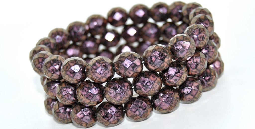 ファイアポリッシュラウンドファセットビーズ、ブラックレッド虹色(23980-86944)、ガラス、チェコ共和国