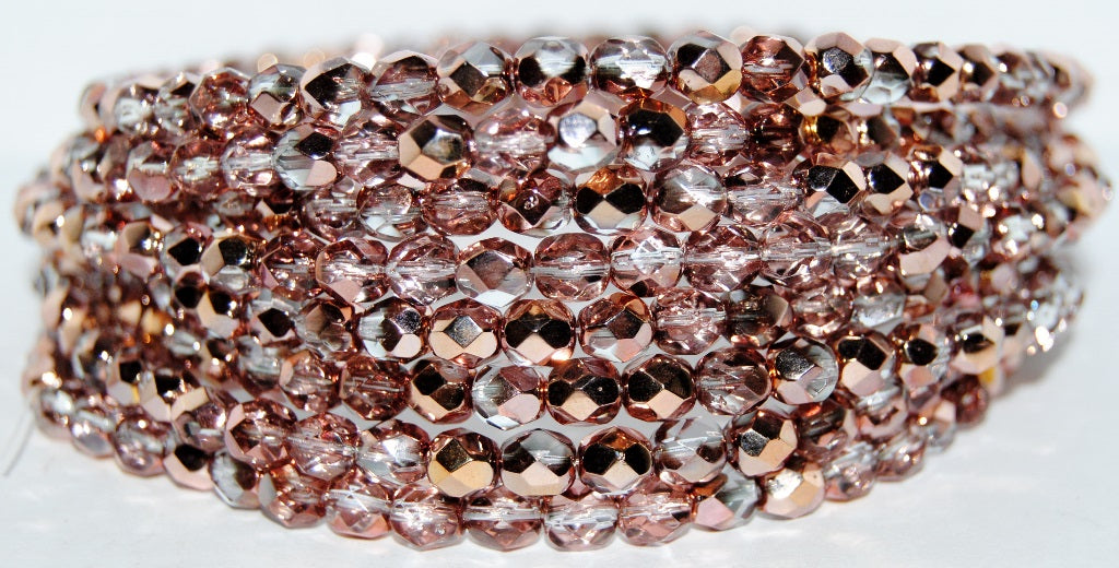 ファイアポリッシュラウンドファセットビーズ、透明ブルーローズゴールドカプリ(30000-27101)、ガラス、チェコ共和国