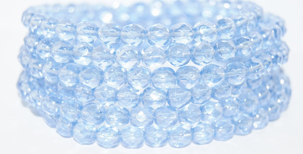 ファイヤーポリッシュラウンドファセットビーズ、透明ブルーヘマタイト(30020-14400)、ガラス、チェコ共和国~STRANDED