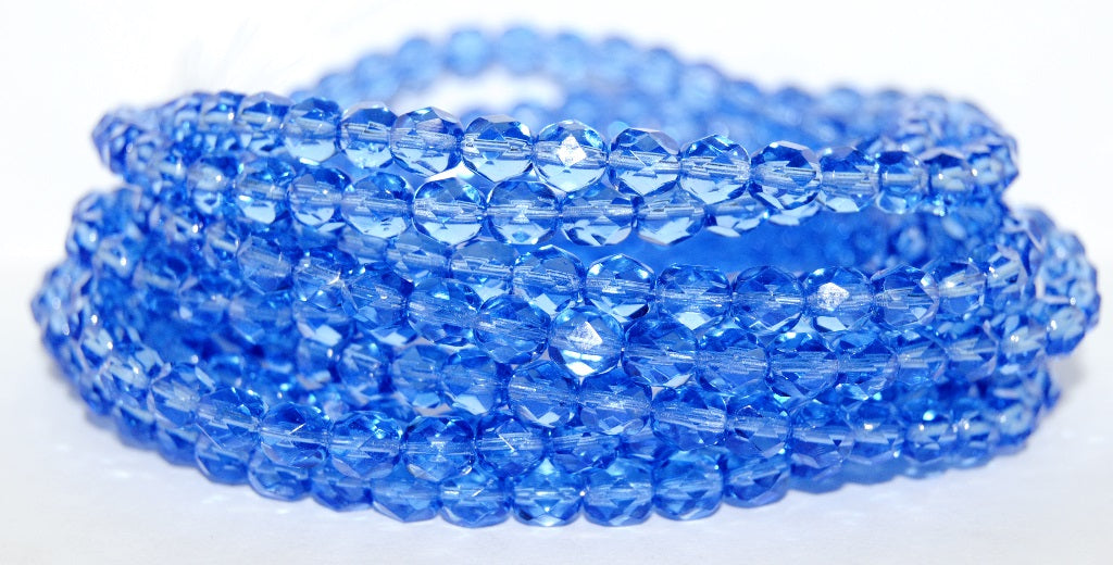 ファイアポリッシュラウンドファセットビーズ、透明ブルー(30040)、ガラス、チェコ共和国