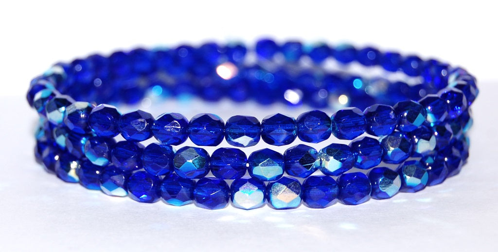 ファイヤーポリッシュラウンドファセットビーズ、透明ブルーAb(30060-AB)、ガラス、チェコ共和国〜STRANDED