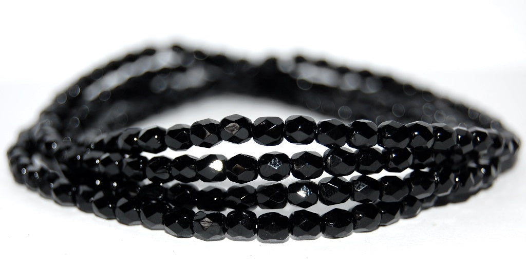 ファイヤーポリッシュラウンドファセットビーズ、ブラック(23980)、ガラス、チェコ共和国