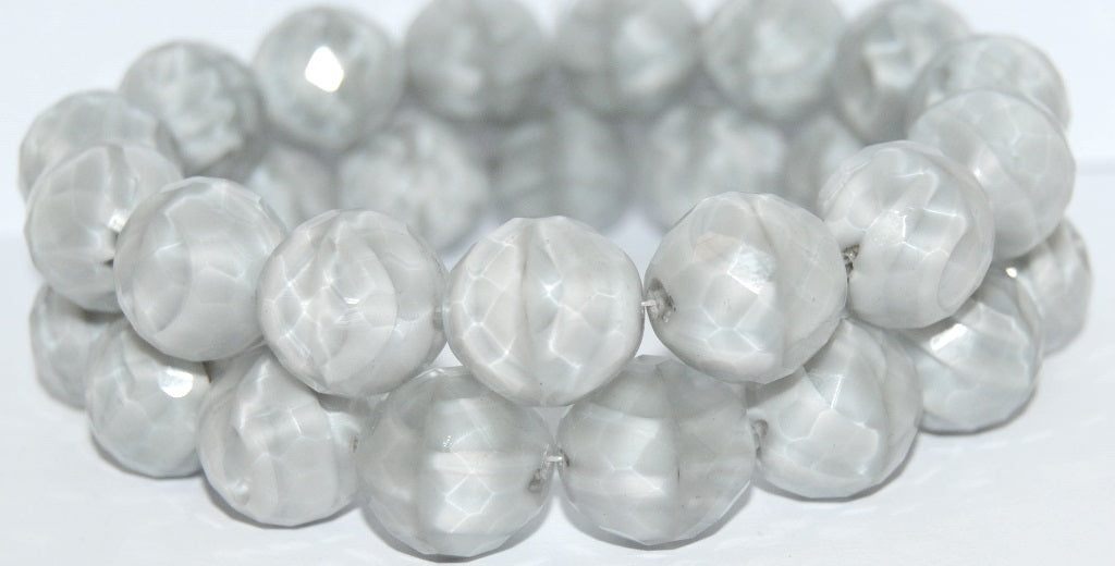 ファイアポリッシュラウンドファセットビーズ、シルキーグレー(46017)、ガラス、チェコ共和国