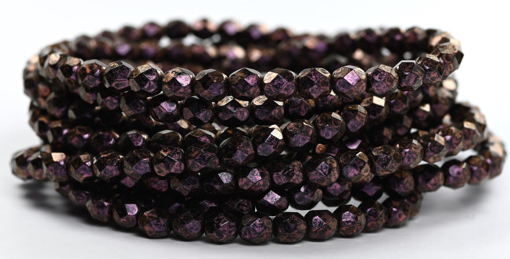 ファイアポリッシュラウンドファセットビーズ、レッドイリディセント(86944)、ガラス、チェコ共和国