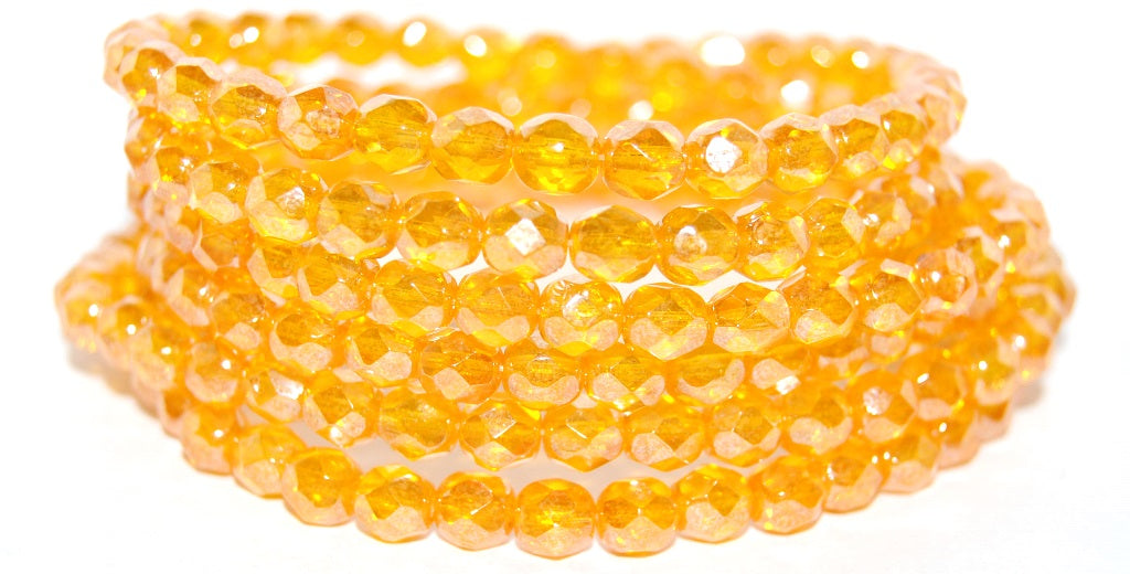 ファイアポリッシュラウンドファセットビーズ、透明オレンジヘマタイト(90020-14400)、ガラス、チェコ共和国