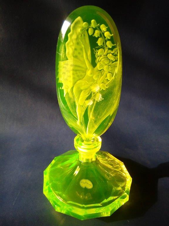 製品は、ワセリンガラスとも呼ばれる蛍光ウランガラスで作られています。