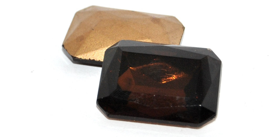 オカゴンエメラルドカット長方形ポイントバックファセットカボション、スモークトパーズフォイル(3022-SMOKE-TOPAZ-SIMILIZATION)、ガラス、チェコ共和国~STRANDED