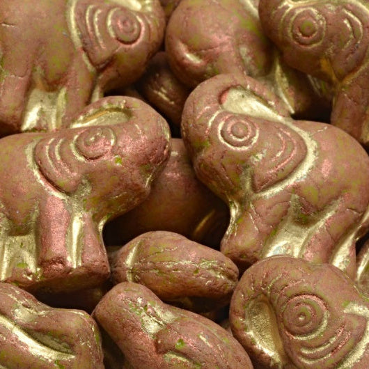 アウトレット 250g エレファントビーズ、20 x 21 mm、不透明グリーンゴールドライニング銅コーティング(53400-54302-56903)、ガラス、チェコ共和国