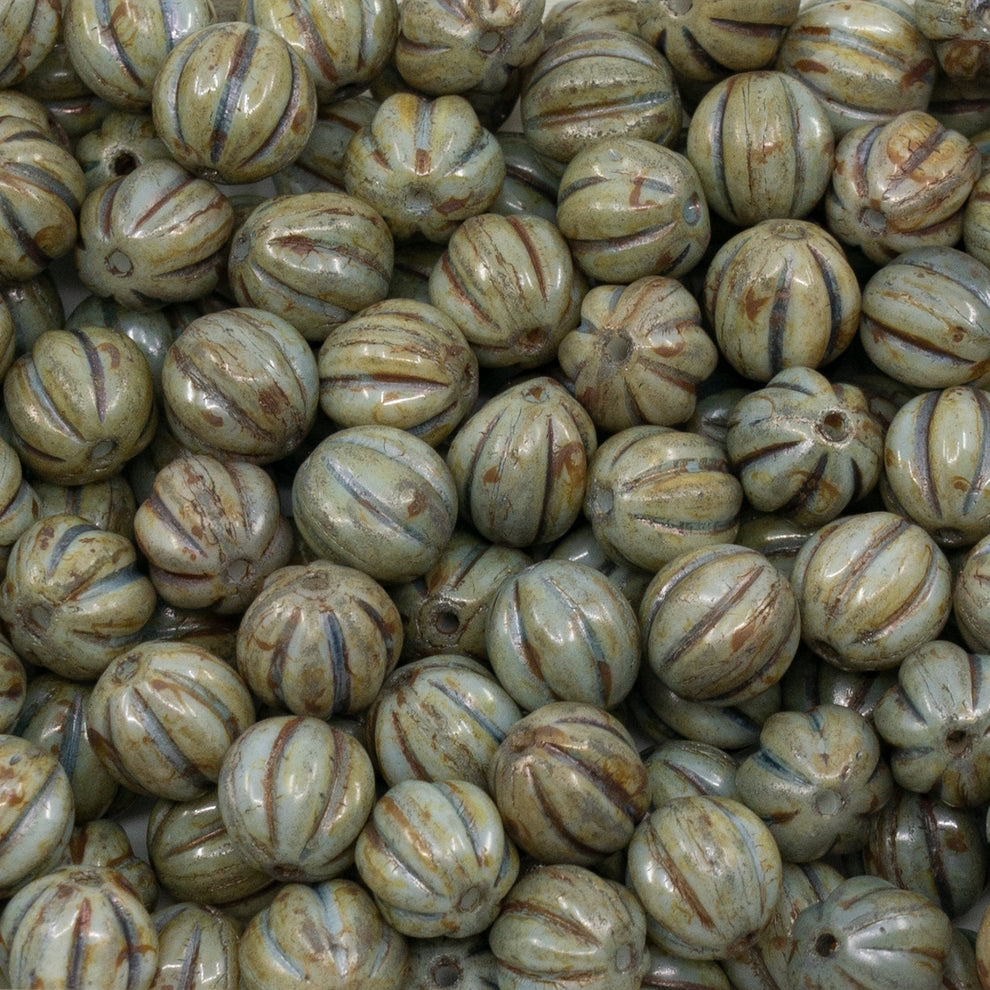 アウトレット 250g メロンビーズ、8 x 8 mm、ホワイトステイン、ラスターブルーB(02010-65431-B)、ガラス、チェコ共和国