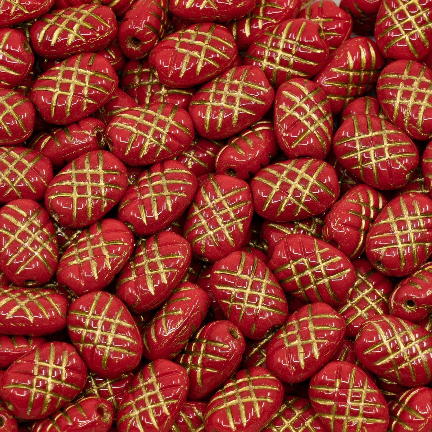 アウトレット 250g オーバルビーズ(交差線入り)、10 x 7 mm、不透明レッドゴールドライン(93200-54302)、ガラス、チェコ共和国