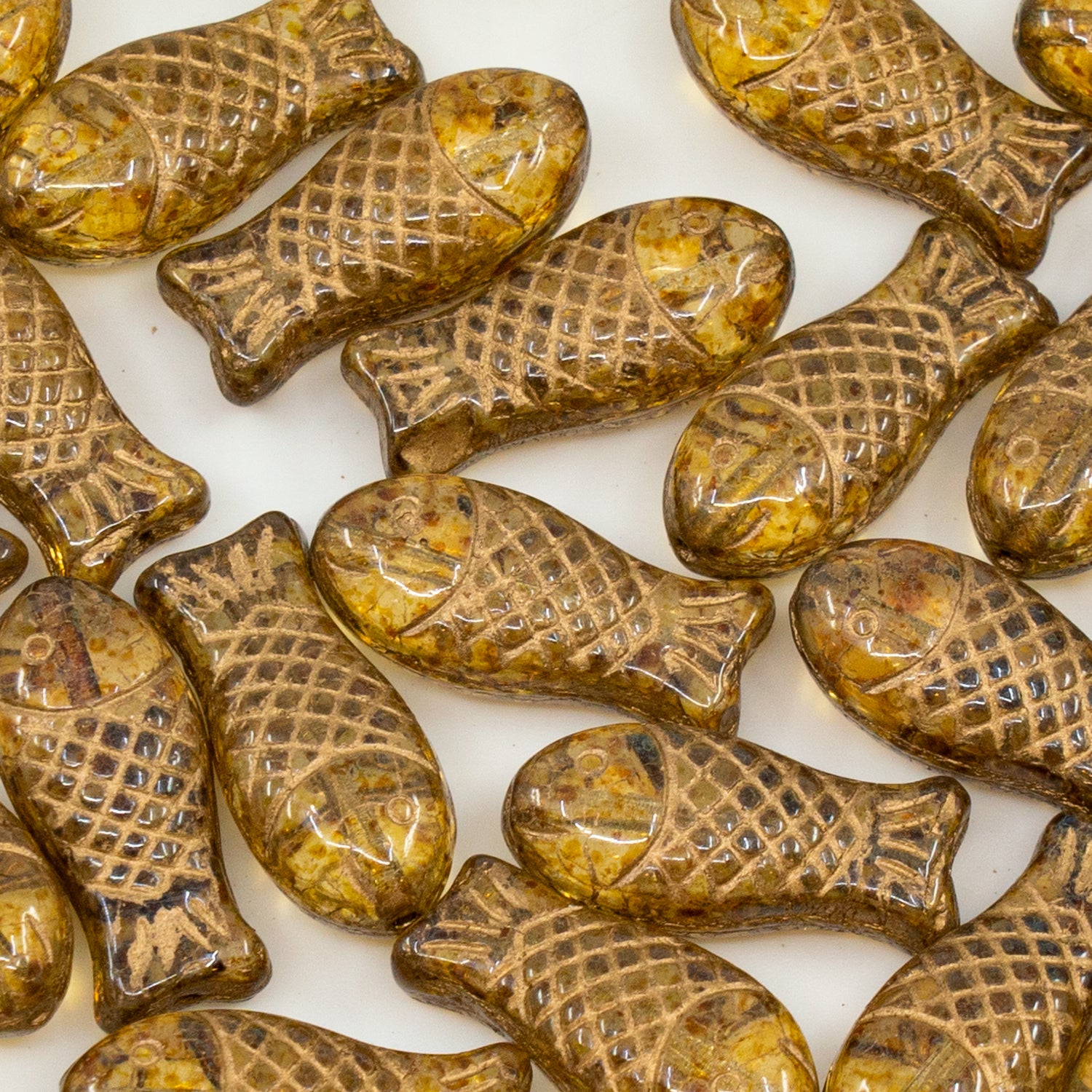 アウトレット 250g ミディアムフィッシュビーズ、20 x 7 mm、クリスタルトラバーチンゴールドライニング(00030-86800-54302)、ガラス、チェコ共和国
